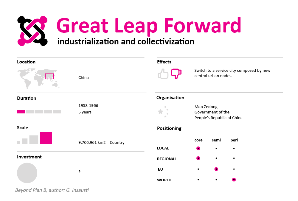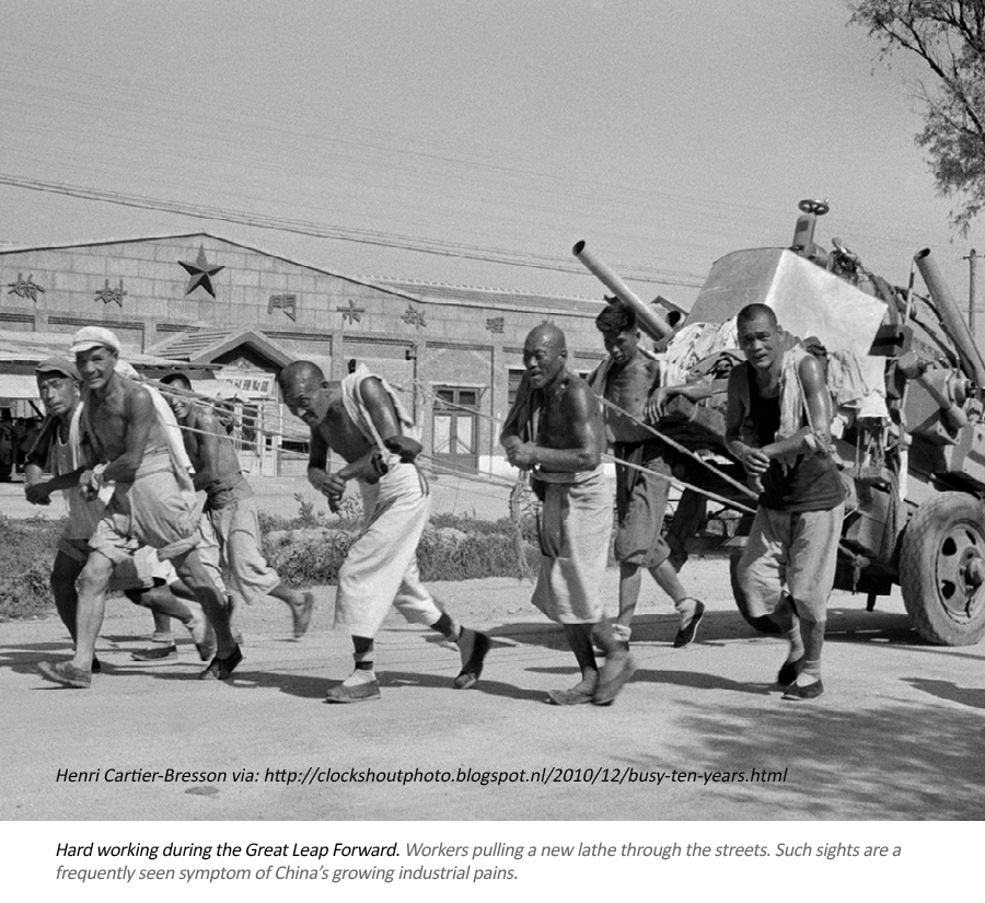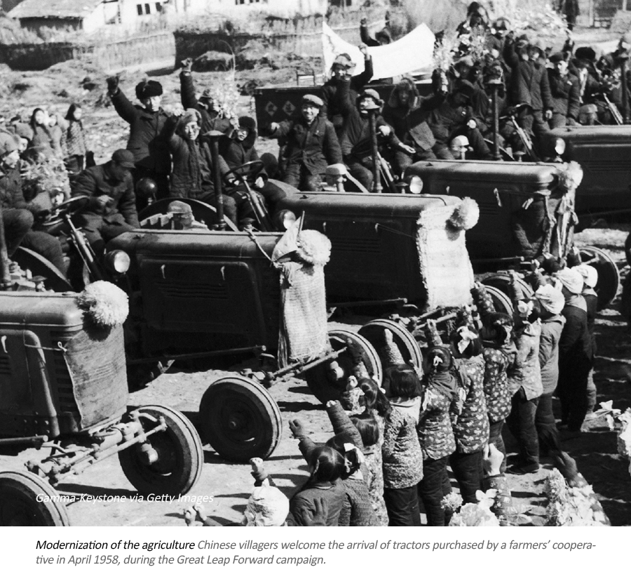 The rapid transformation of China’s vast population from a primarily agrarian economy into a modern communist society through the process of agriculturalization and industrialization.